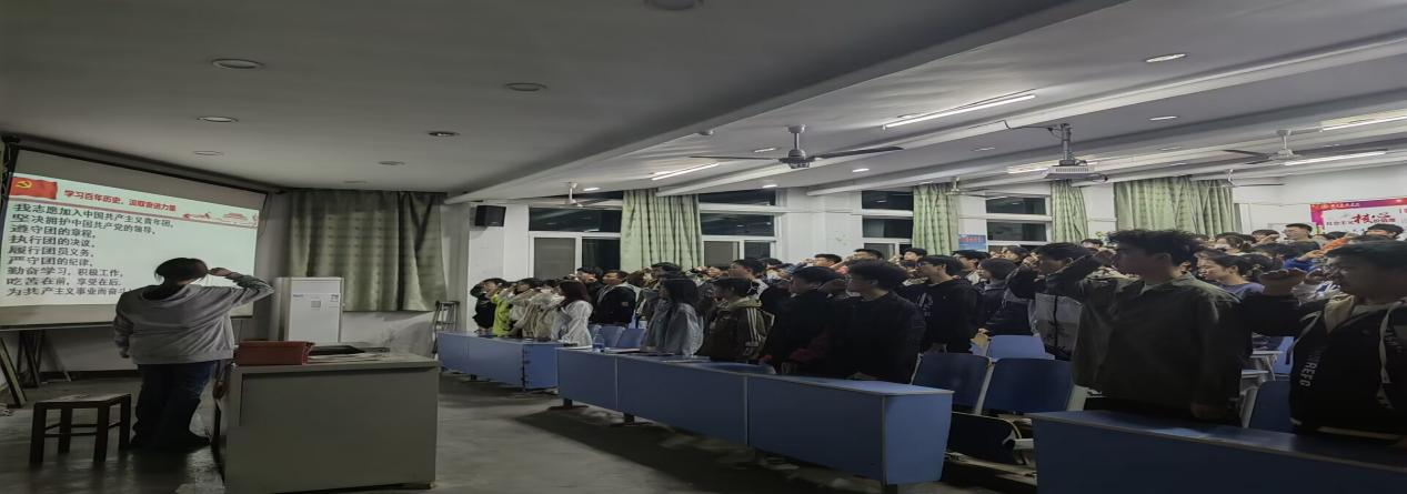 主题团日活动在庄严肃穆的国歌声中开始,依次进行诵读团章、宣讲雷锋精神内涵,重温入团誓词,高唱团歌等内容。各班宣讲人采用视频、理论文章相结合的方式,带领同学们学下《关于组织开展学雷锋志愿服务主题宣传实践活动的通知》和《关于在第24个"中国青年志愿者服务曰”前后开展青年志愿者服务社区行动的工作提示》等文件精神。在宣讲人的带领下,同学们不仅对雷锋助人为乐、无私奉献的精神有了深刻的认识,也进一步理解了雷锋精神的深刻内涵。