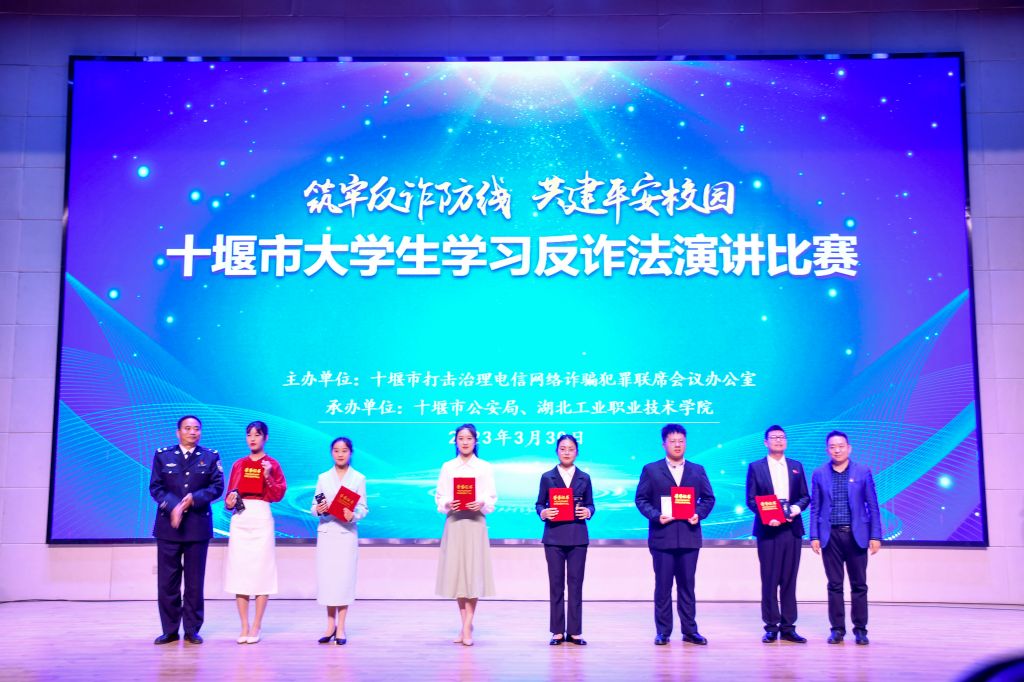 本网讯(通讯员 褚飞扬 楼明依)3月30日下午,十堰市大学生学习反诈法演讲比赛决赛在湖北工业职业技术学院大礼堂举行,best365网页版学子晋国晋获二等奖、孙浩文、曹晶获优秀奖。