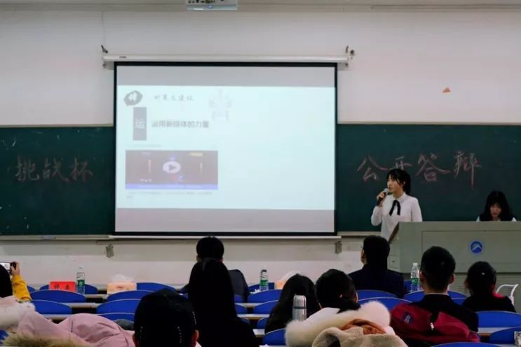 本次共有24个在校级赛中获奖的项目参与展示与答辩。其中13个自然科学类项目在科教楼513会议室进行;哲学社会科学和科技发明类共11个项目在5212教室进行。每组选手有5分钟的陈述时间和3分钟的评委提问时间。