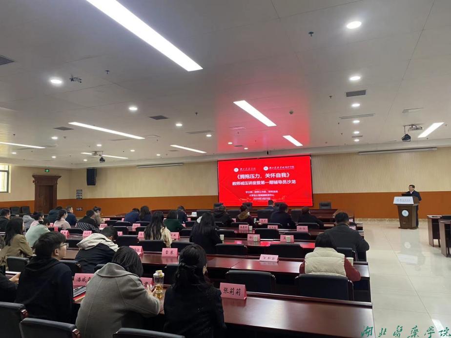 本网讯(通讯员 刘媛媛)3月25日上午,教师减压讲座暨2024年第一期辅导员沙龙在科教楼一楼多功能厅举行,党委常委、组织部部长张海蛟出席活动并讲话。