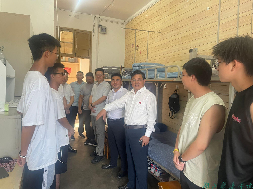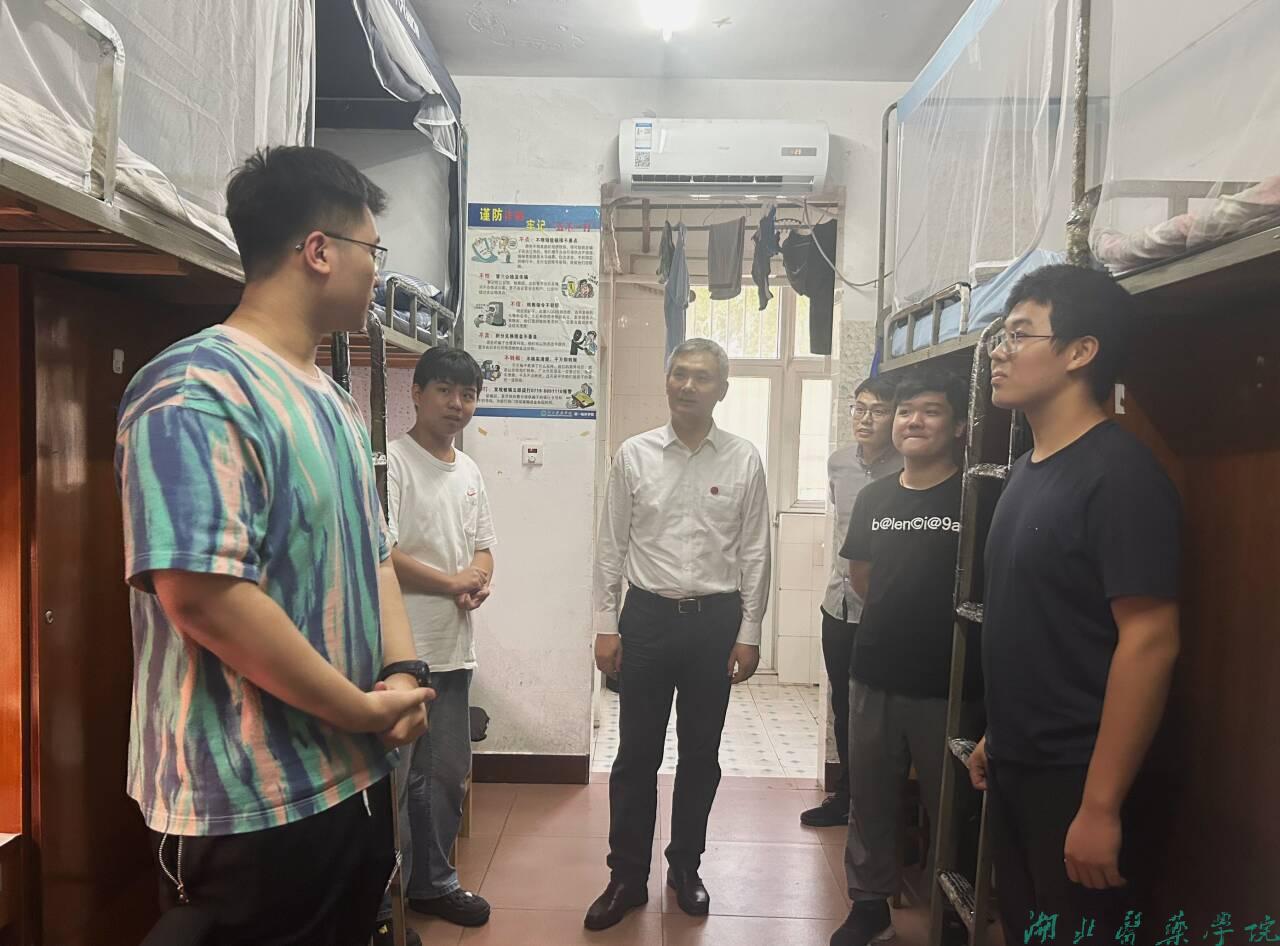 党委常委、组织部部长张海蛟在走访中提醒同学们在日常生活中要加强安全意识,掌握基本的安全知识与技能,叮嘱大家要尽快适应新环境、融入新生活,在湖医药成就最美好的自己。